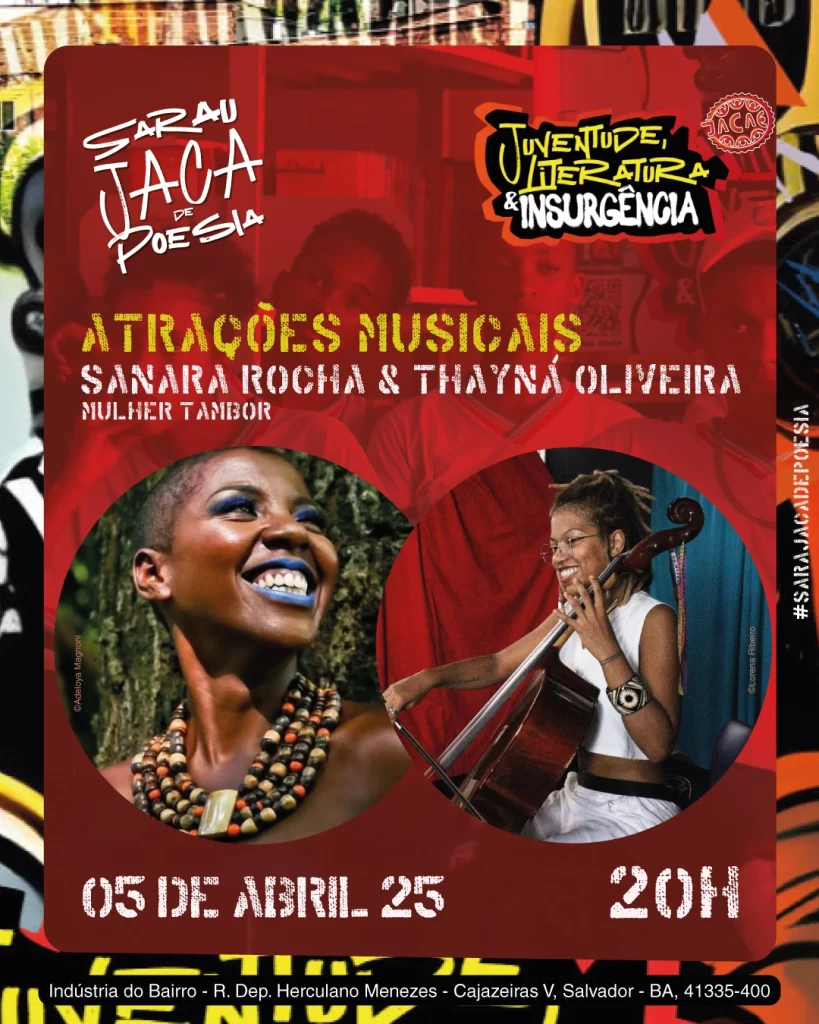 Tá chegando mais um Sarau JACA de Poesia! ✊🏾✨ E teremos uma convidada especial abrilhantando nossa noite de sábado:Tamara Coral é cantora, compositora, artesã, fotógrafa e estudante de Produção Cultural […]